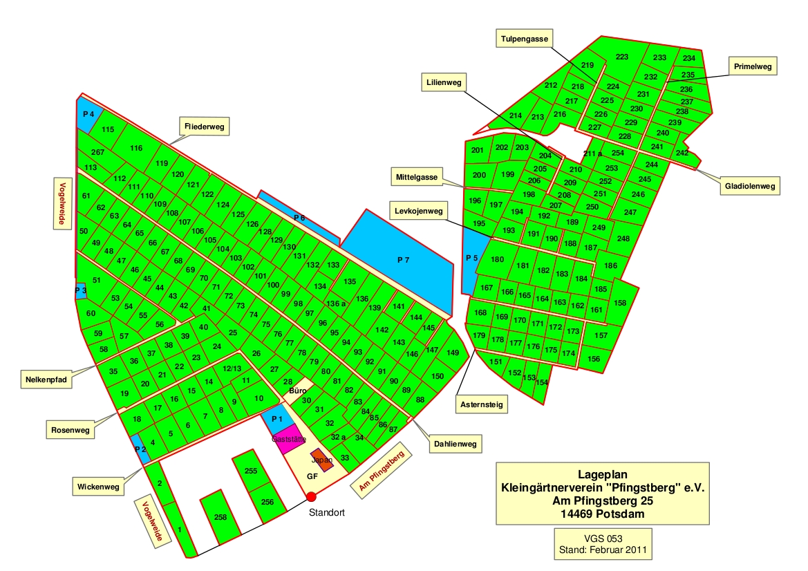 Der Kleingärtnerverein Pfingstberg e.V. Potsdam wurde am 24.04.1923 gegründet und ist der größte Kleingartenverein (KGV) in der Landeshauptstadt Potsdam. Mit seiner idyllischen Lage in direkter Nähe zum Pfingstberg und zum Volkspark bildet unser Verein einen wichtigen Teil des grünen Potsdamer Nordens.