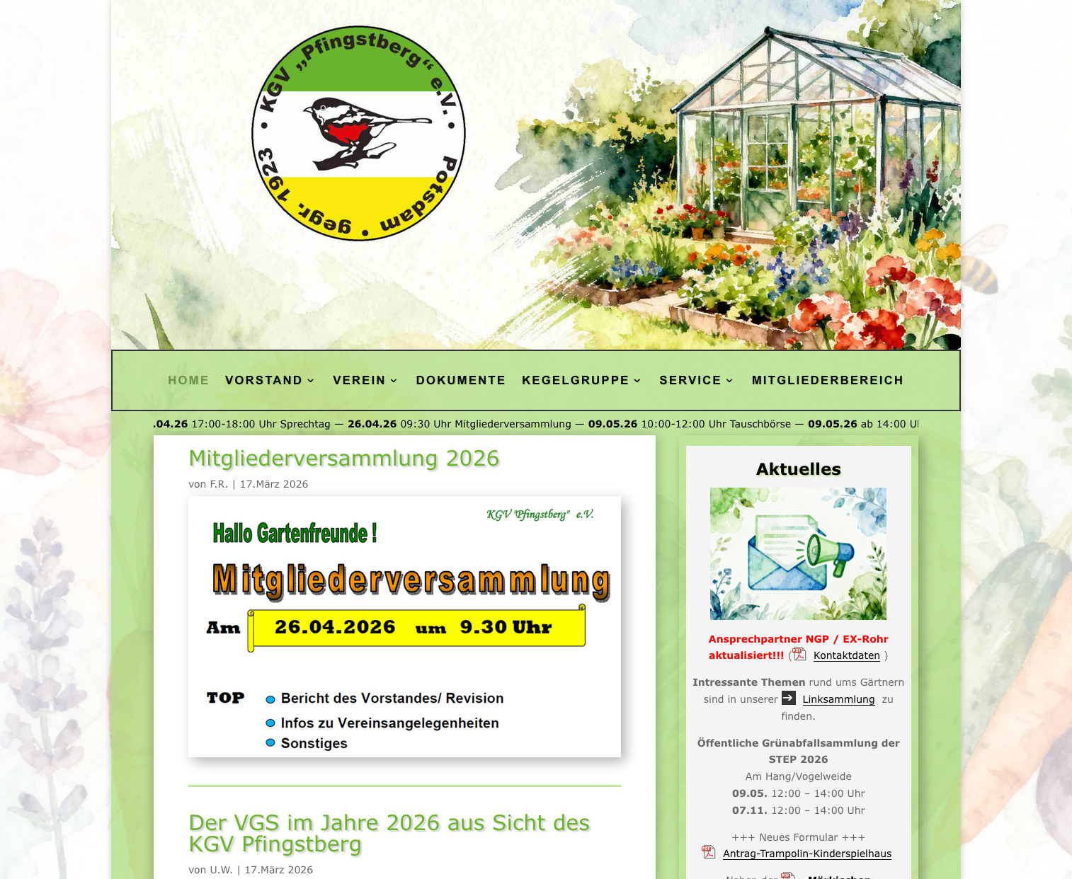 Liebe Freunde des Kleingärtnervereins Pfingstberg e.V.,